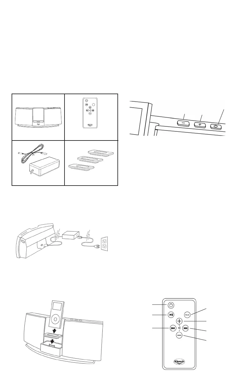 την πρίζα και τοποθετήσετε το iPod στη βάση υποδοχής. Στην πάνω δεξιά πλευρά