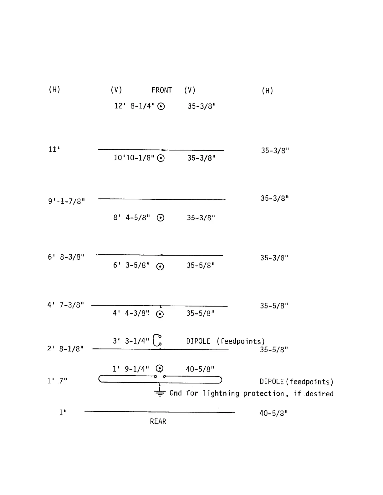 X X = FEEDPOINTS. For 50 ohm feedline, each set of feedpoints has an
