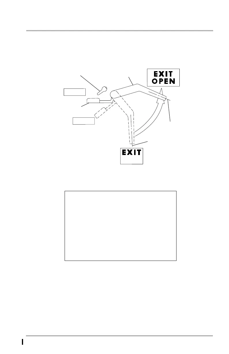1. Hold door control handle in Emergency EXIT OPEN