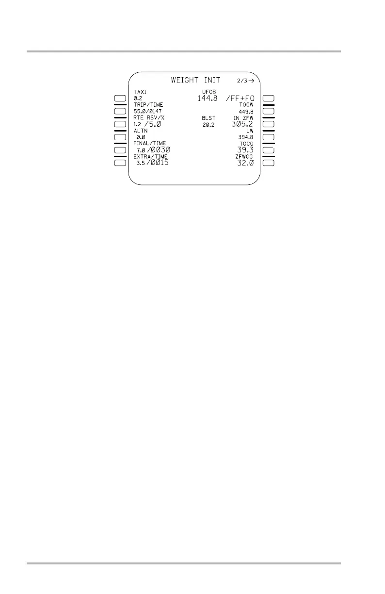 Entries into the TOCG field on the WEIGHT INIT page will cause the display on