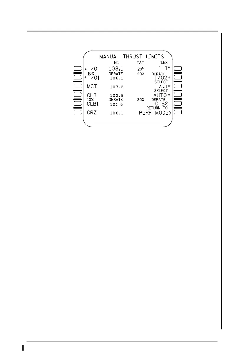 The title of the THRUST LIMITS page changes to MANUAL THRUST LIMITS