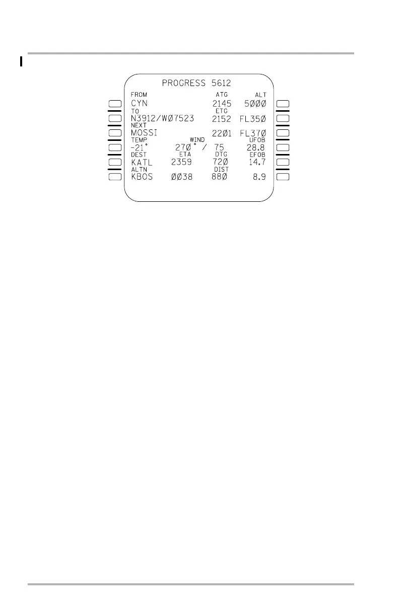 • The last flight plan waypoint (FROM) with the actual time (ATG) of