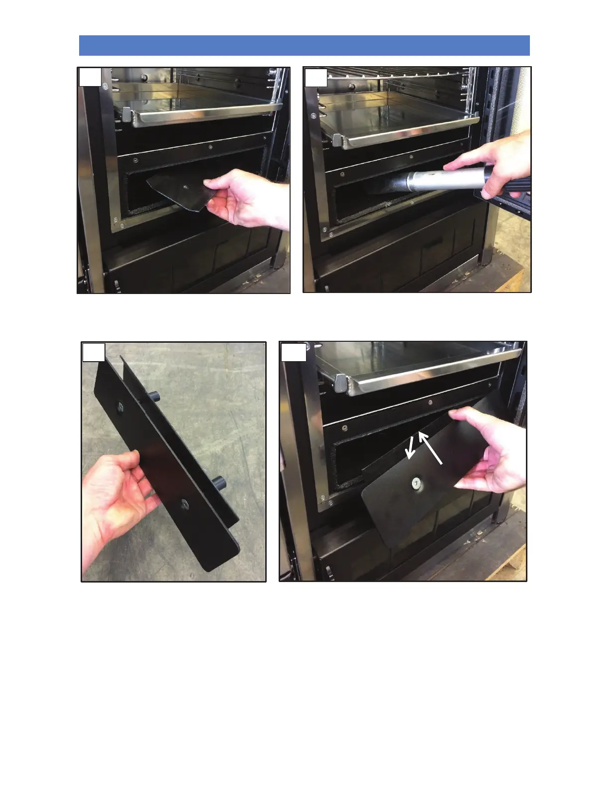 Once cleaned, reassemble the inspection vent below the oven