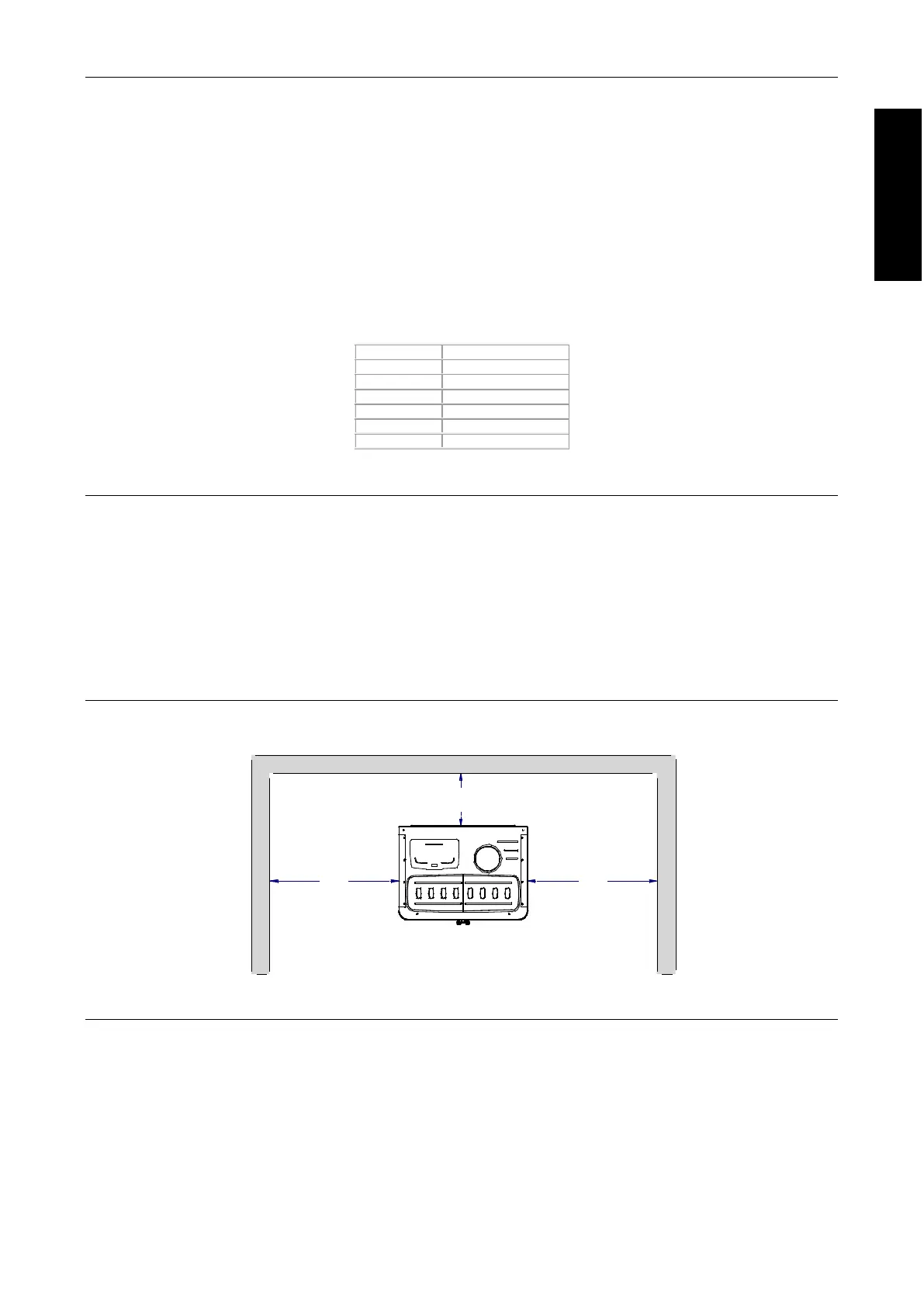 Nella figura sottostante sono indicate le misure minime da rispettare nel posizionamento della termostufa rispetto alle pareti.