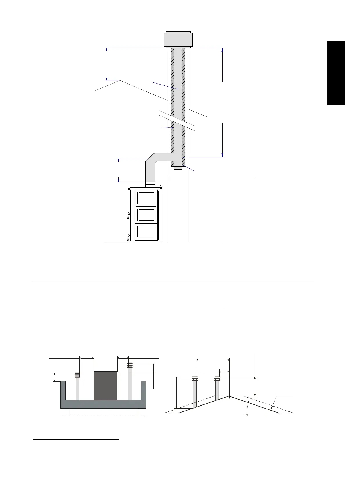 Per la realizzazione della canna fumaria non sono permessi tratti orizzontali. La canna fumaria deve essere realizzata con tubo di diametro 180 mm in