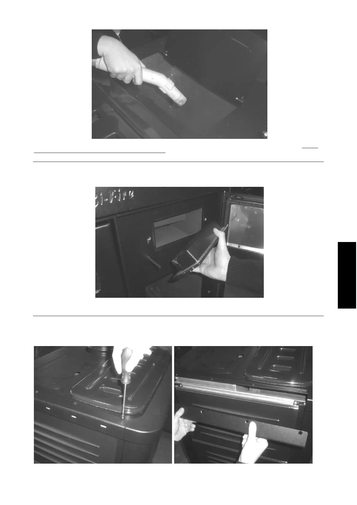 Después de quitar la boca superior del lado leña, aspire el posible depósito dentro del recorrido de humos.