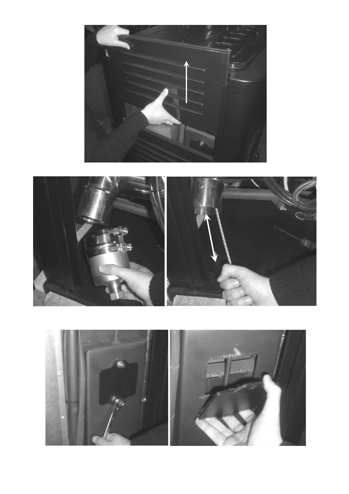 Después de desatornillar los dos pernos quite la boca de inspección del recorrido de humos lateral (lado pellet).