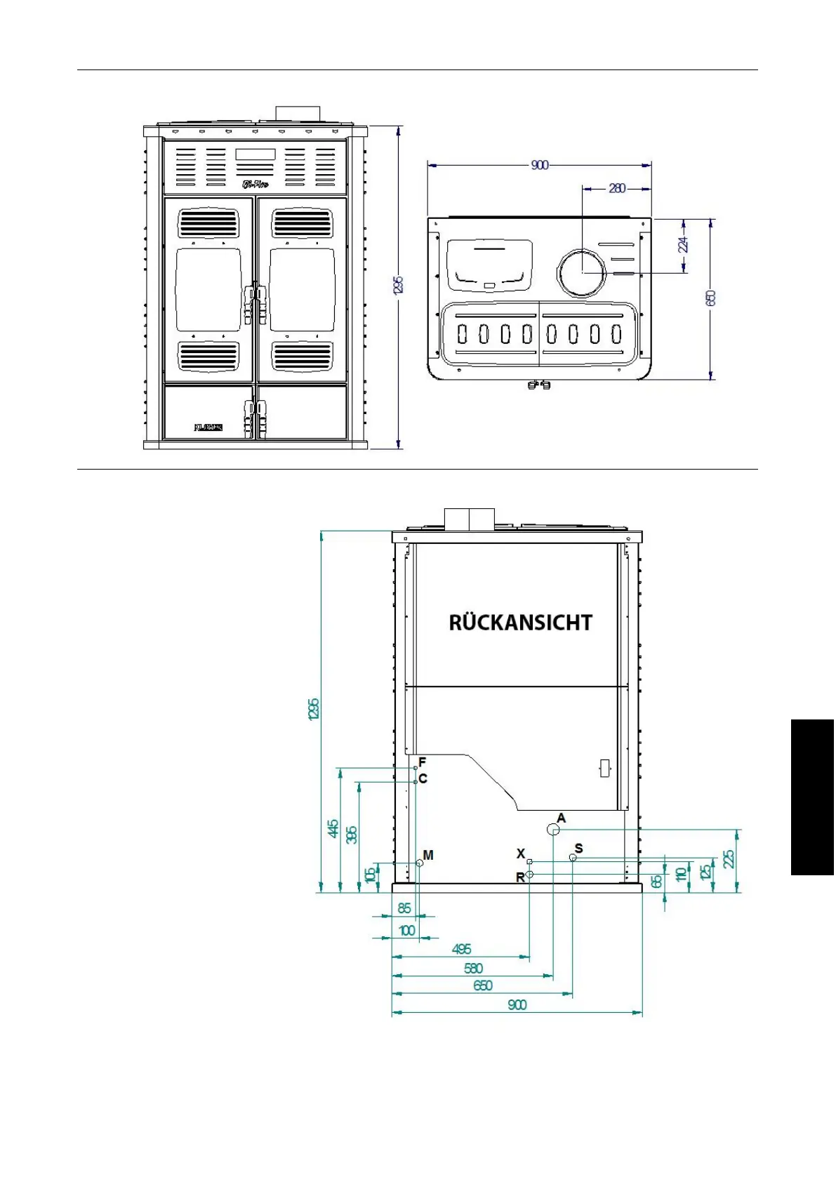 A = LUFTANSAUGUNG (Seite Pellets) Ø 43 mm