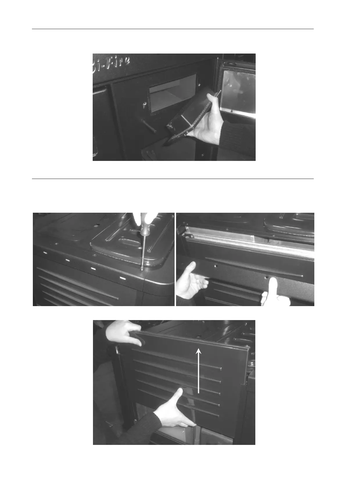 Dopo aver tolto l’angolare superiore sinistro sfilare verso l’alto le quattro maioliche laterali (o il fianco in acciaio verniciato).