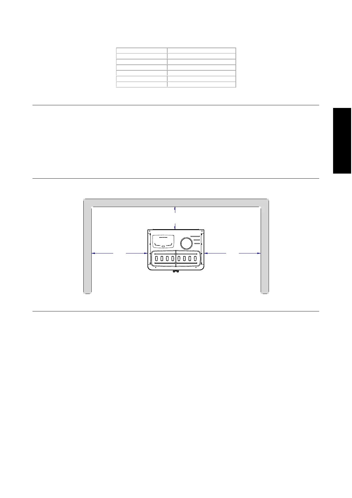 Les éventuelles étagères ou les faux plafonds doivent être montés à au moins 130 cm au-dessus du poêle.