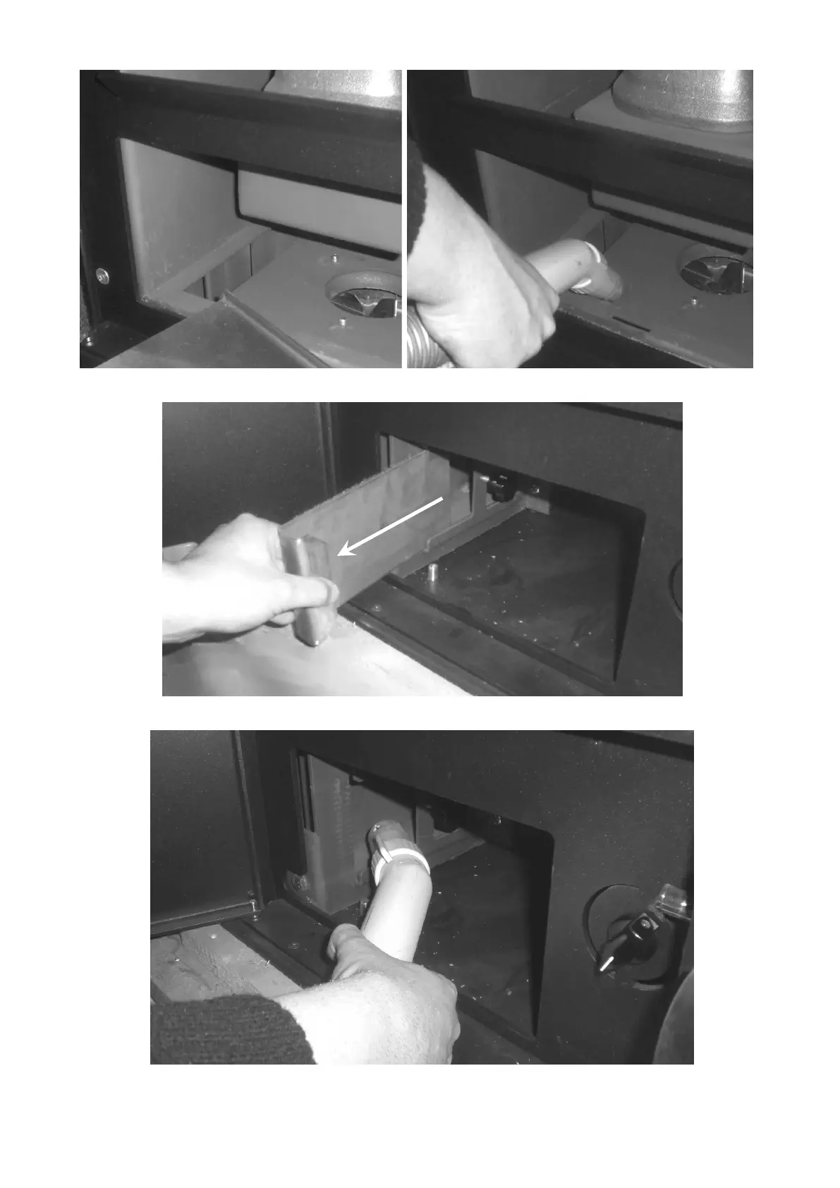 Aspirez le dépôt à l’intérieur à l’aide d’un aspirateur adéquat et remettez en place le fond et le tiroir à cendres.