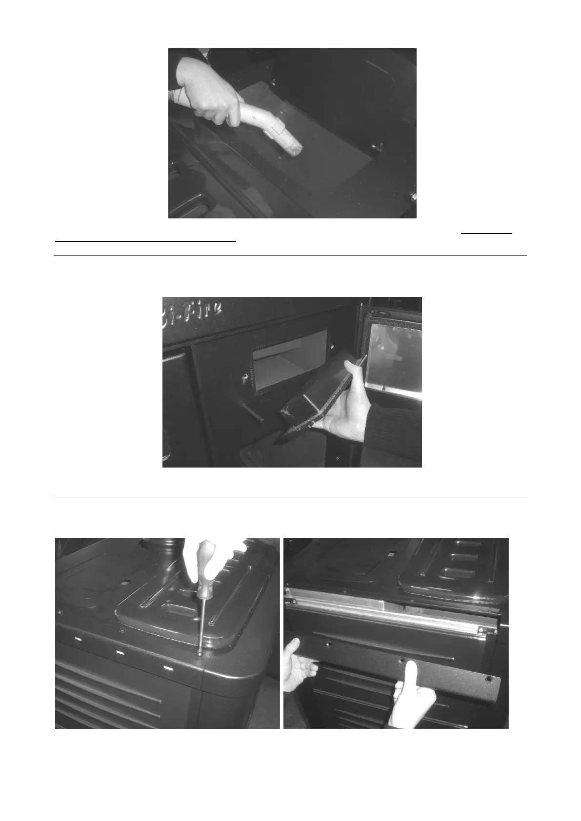 Après avoir retiré la plaque supérieure du côté bois, aspirez l’éventuel dépôt à l’intérieur du passage des fumées.