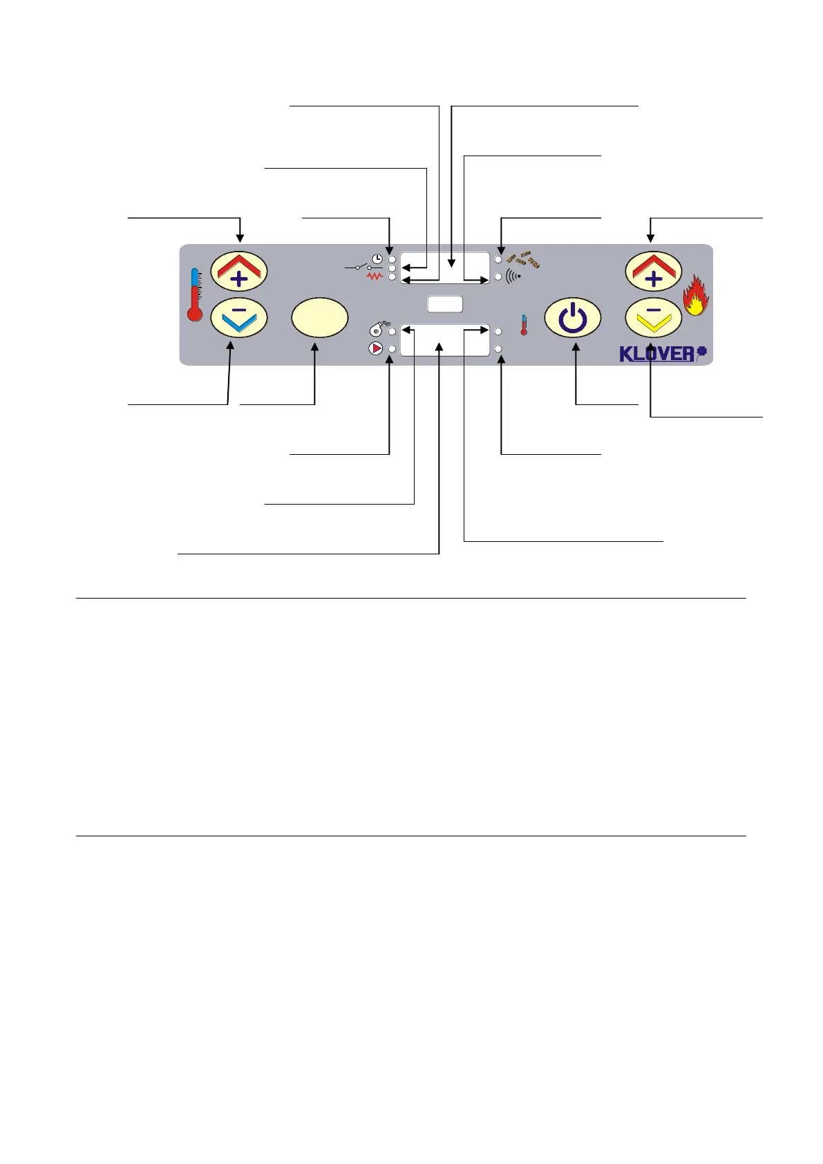 When in work mode, the button allows to decrease the power value of the thermo stove from a maximum of 5 to a minimum of 1; this value is given on