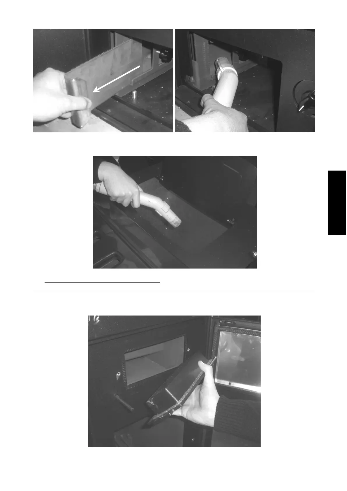 After the upper outlet on the wood side has been removed, suck any ash deposits inside the flue gas pass.