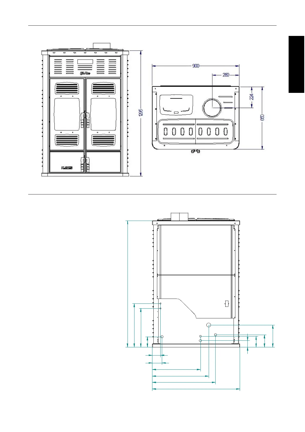 A = ASPIRAZIONE ARIA (lato pellet) Ø 43 mm