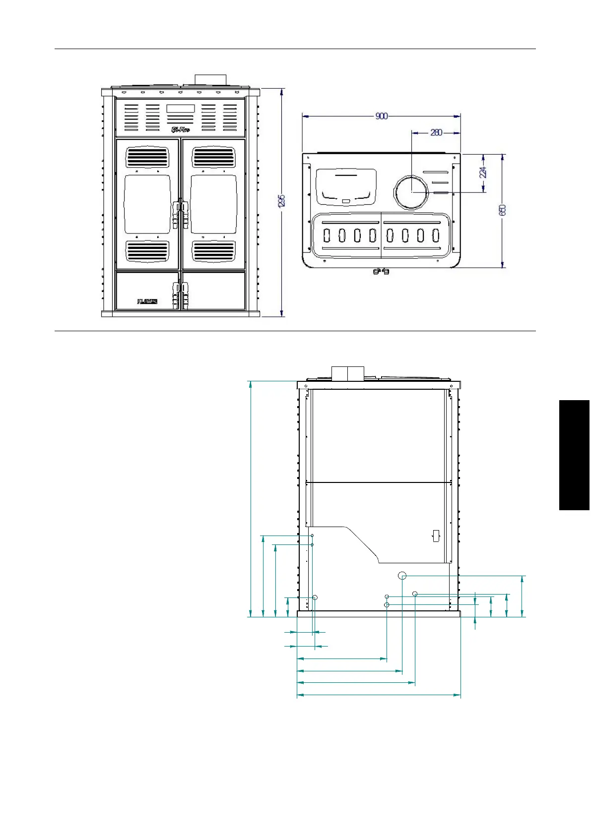 A = ASPIRACIÓN DE AIRE (lado pellet) Ø 43 mm