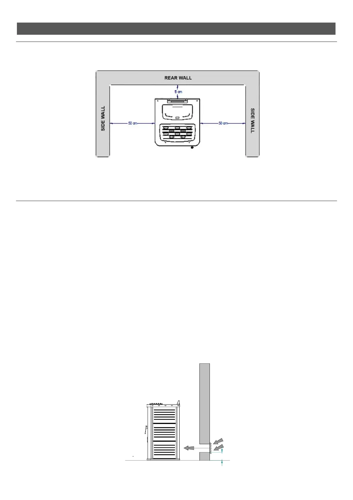 Any shelves or false ceilings mounted above the appliance must be at least 50 cm away from the top part of it.