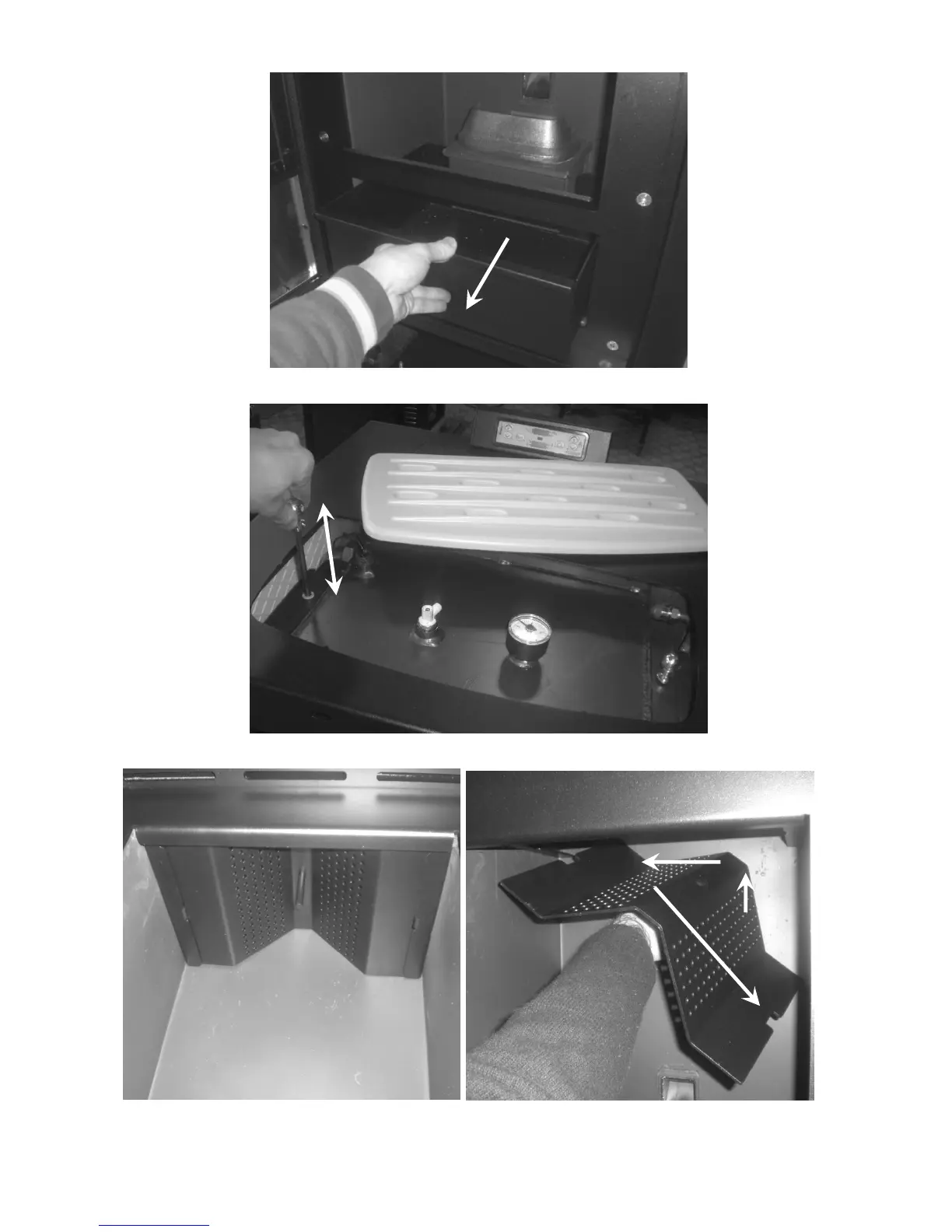 After having removed the majolica top, repeatedly activate the two lateral sticks, to allow cleaning of the flue gas pass.