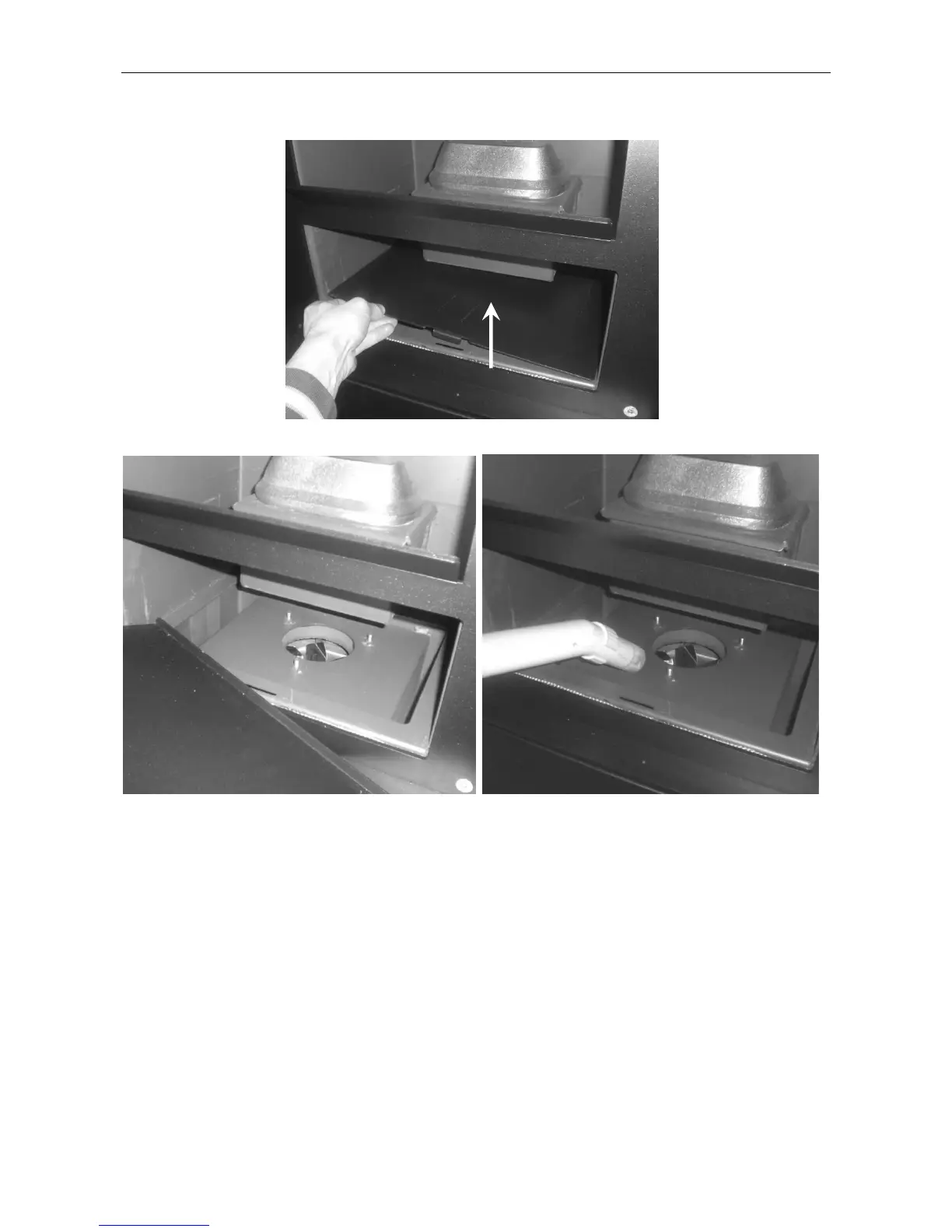 Use a suitable suction device to remove the internal deposits and then re-position the base and the ash drawer.