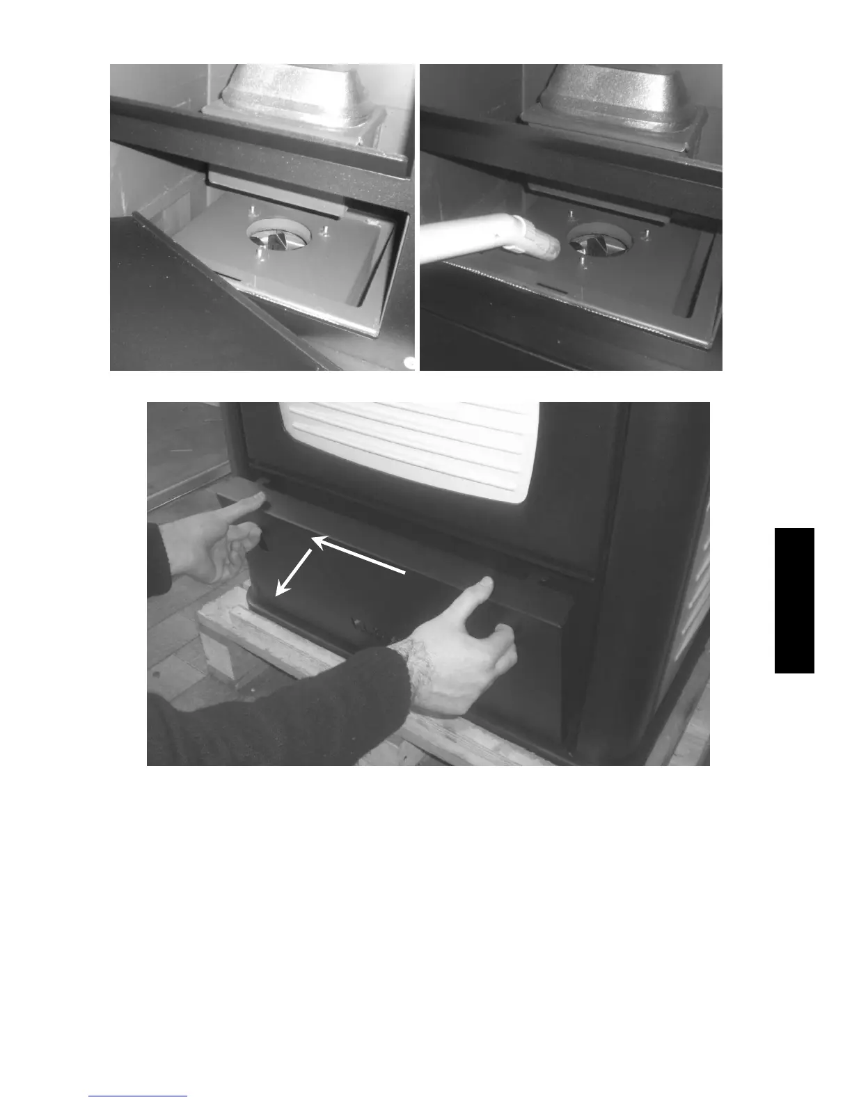 Aspire el interior del depósito utilizando una aspiradora idónea y luego vuelva a posicionar el fondo y el cajón de ceniza.