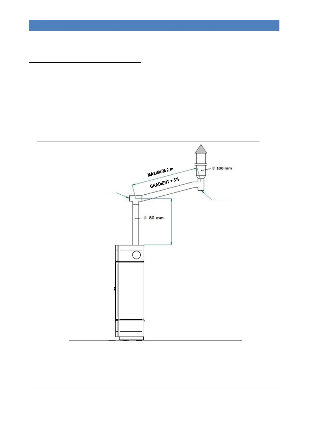 maximum temperature of the flue pipe inside the room must not exceed 70°C.