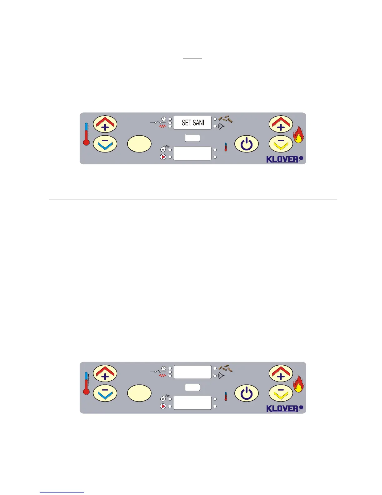 Press key 3 to select “SET SANI” (with work power set on DHW Power) to modify DHW temperature.