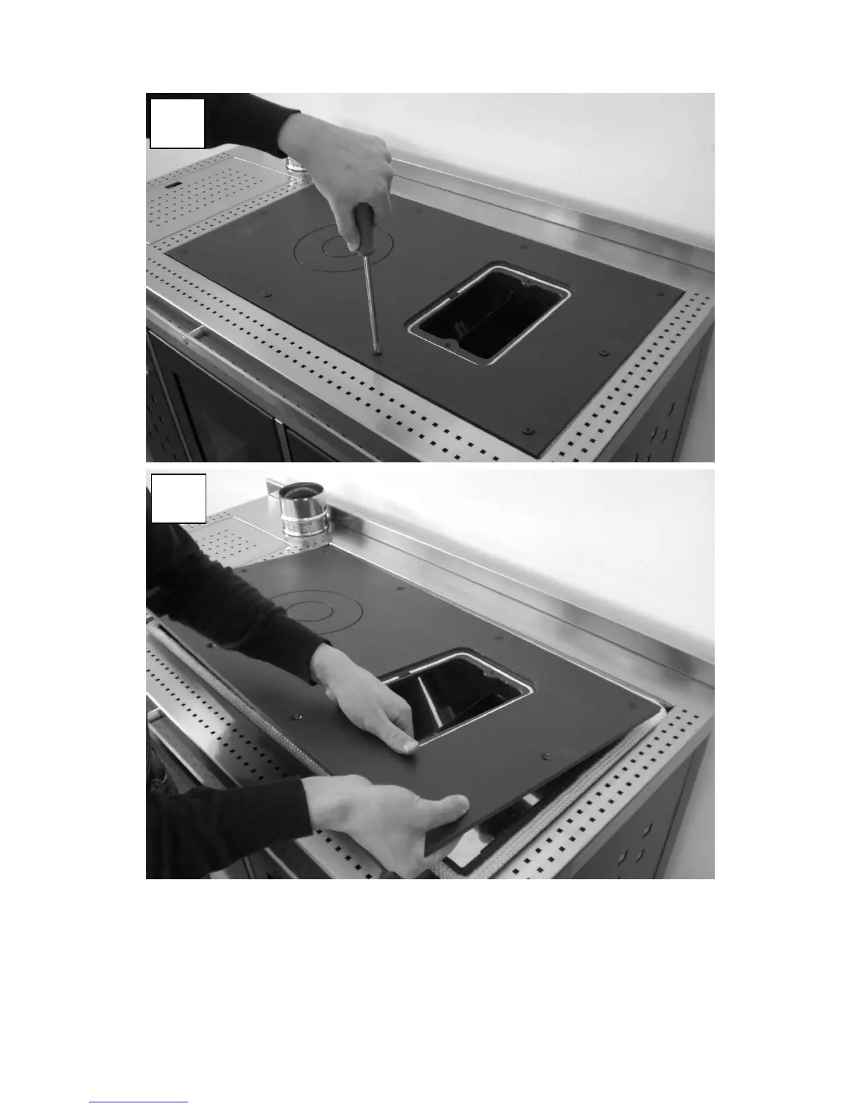 Remove the cooking plate by loosening the ten screws all around it after dismantling the upper cleaning