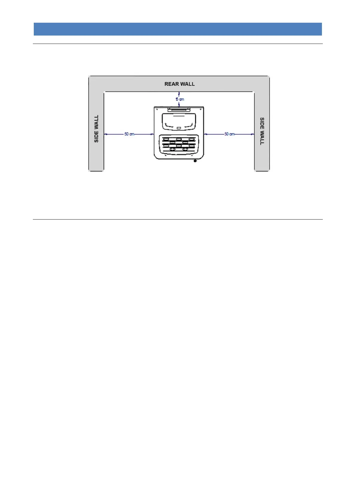 The figure below shows the minimum distances from walls or other not-easily-removable furniture, that need to be taken