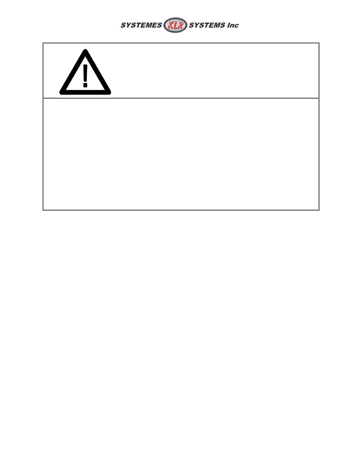 warranties and responsibility from KLR Systems. If a safety component is broken, it must be