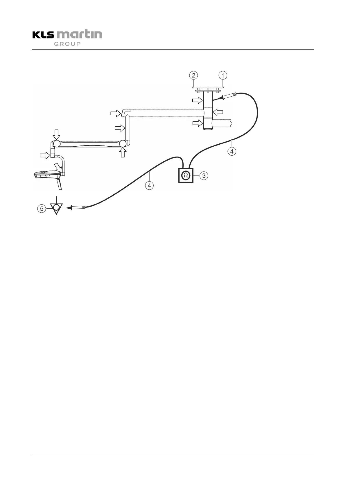 • Measure the resistance between the externally accessible protective conductor (5) and the locations