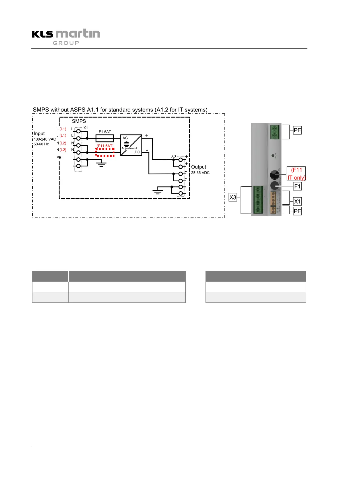X1 Input 100–240 VAC, 50–60 Hz F1/F11