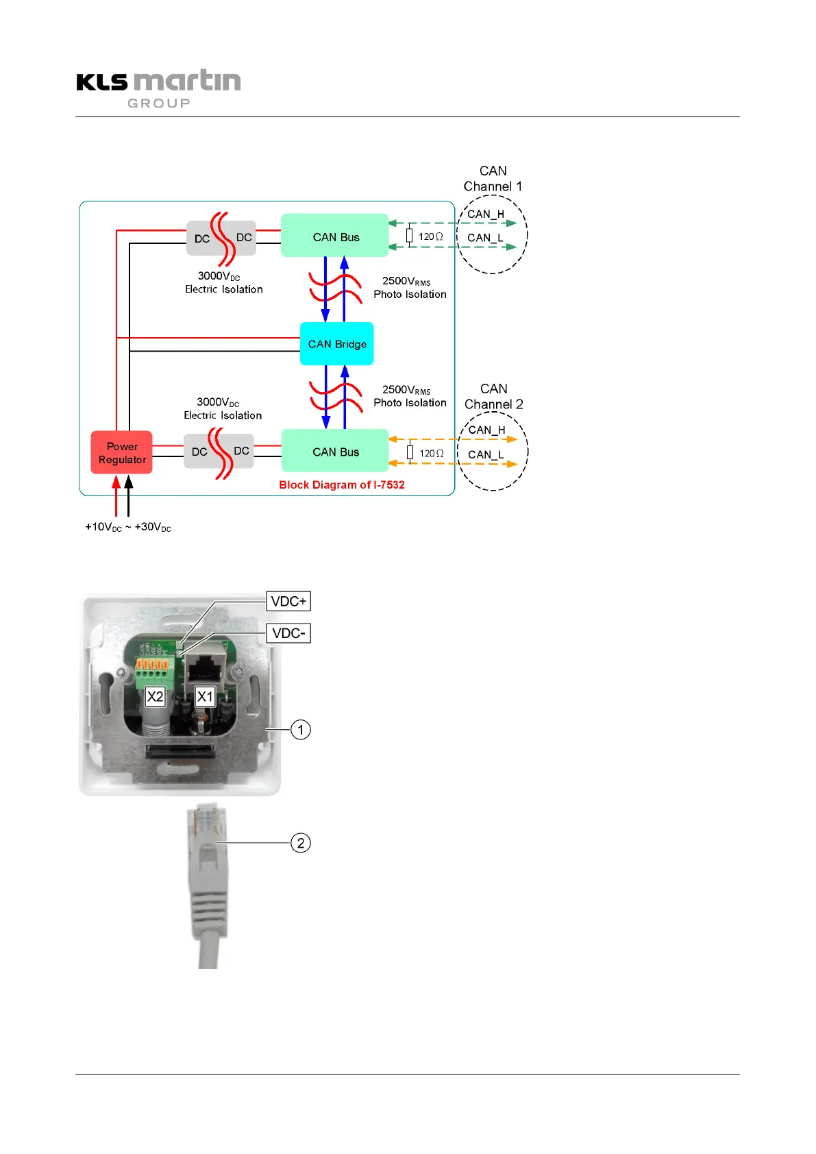 • Connect the cable to the X2 terminal block of the