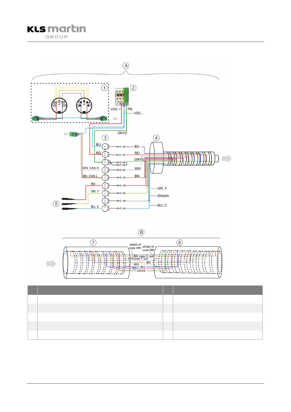 2 Terminal block on ceiling tube 8 Slip-ring socket to light head