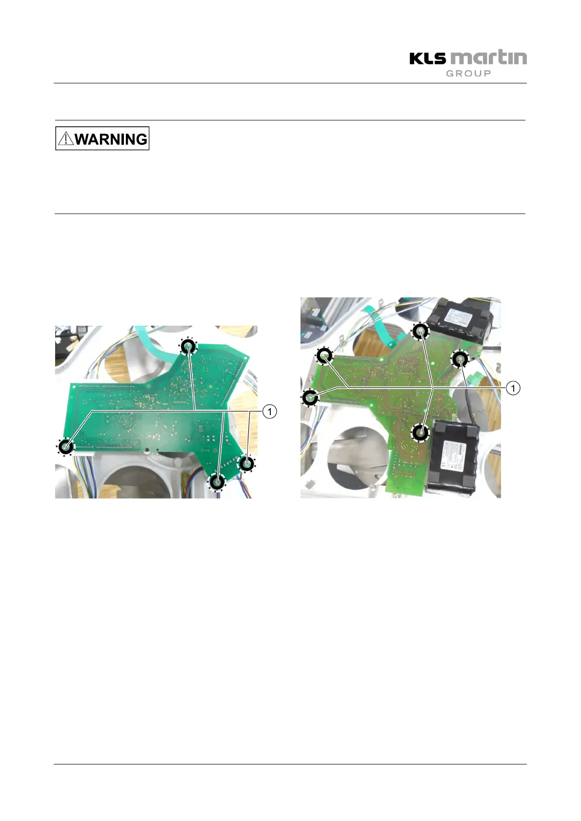 • Remove the fixing screws (1) of the control electronics board.