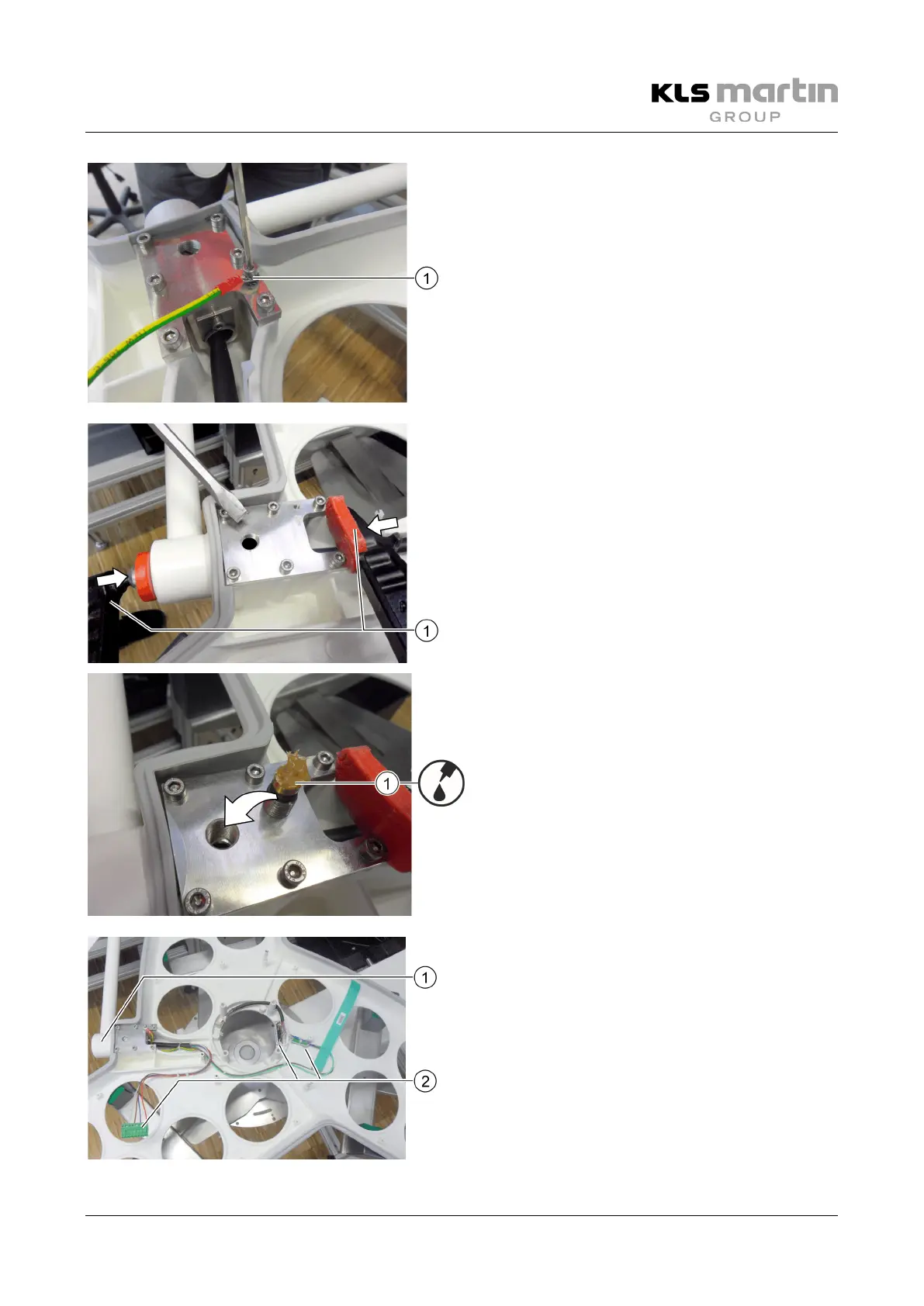 • Screw protective (PE) conductor (1) in place