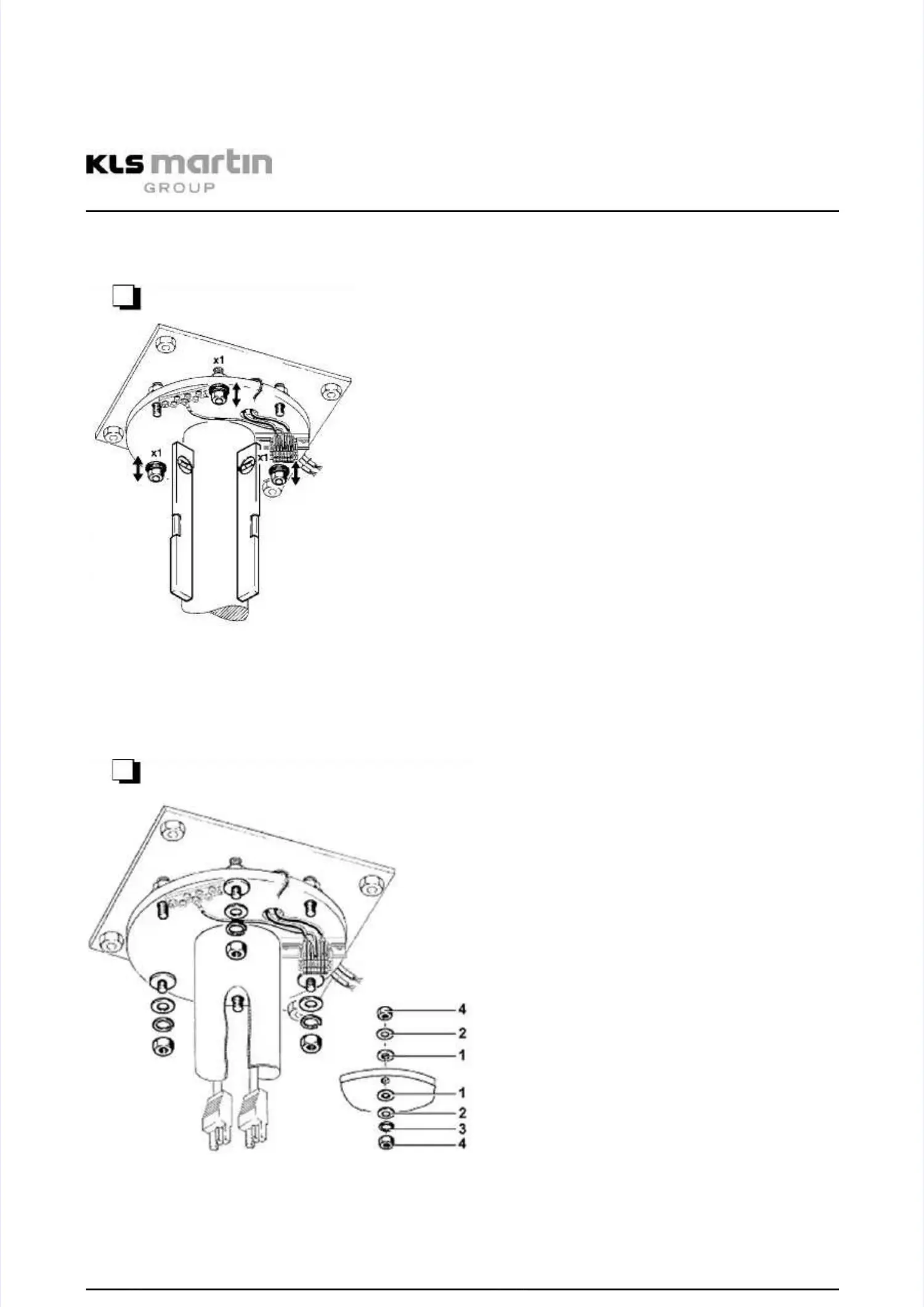 Check if insulation rings (1), washers (2) and Check if insulation rings (1), washers (2) and spring rings (3) are prspring rings (3) are present on all screwesent on all screw
