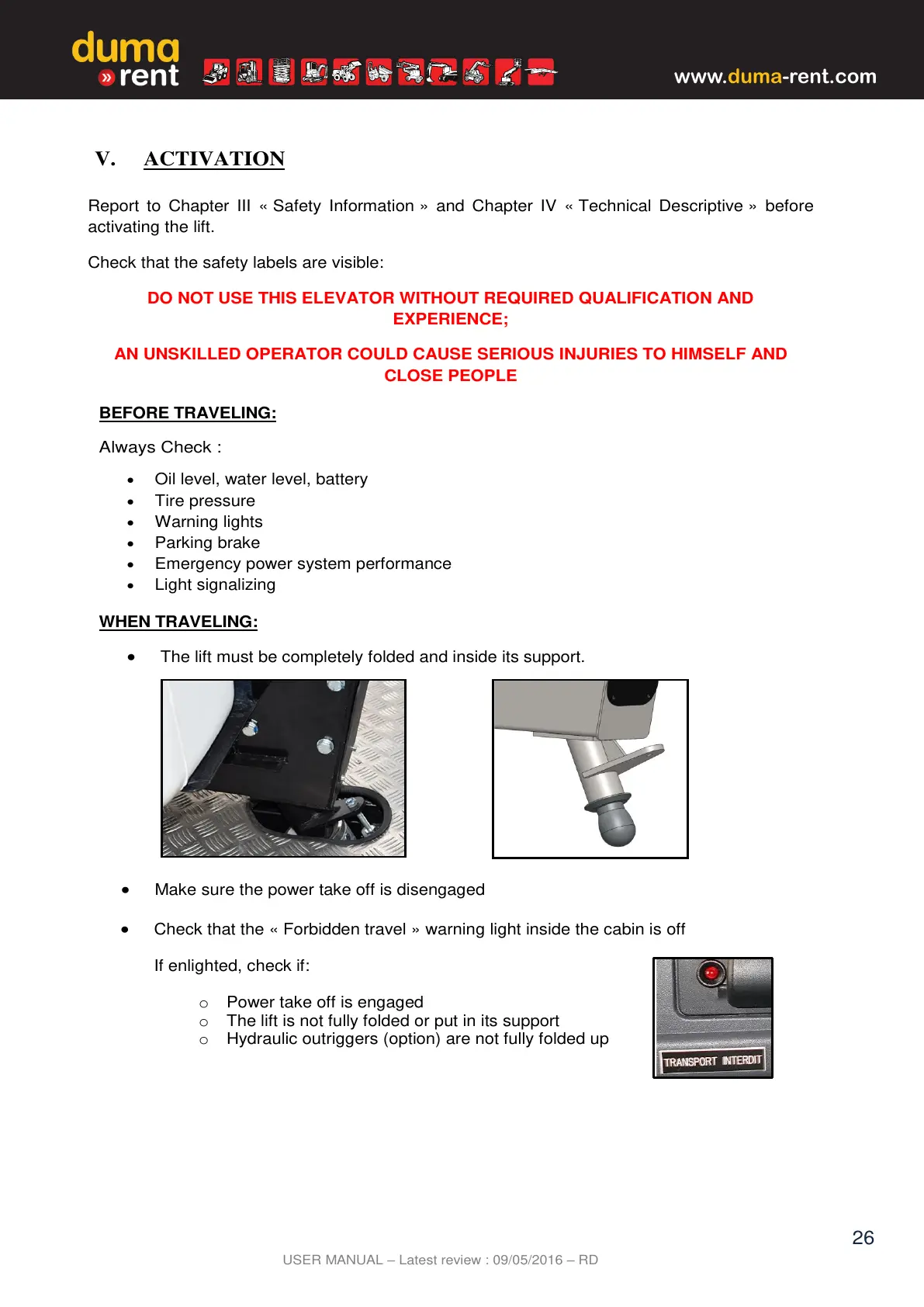 DO NOT USE THIS ELEVATOR WITHOUT REQUIRED QUALIFICATION AND