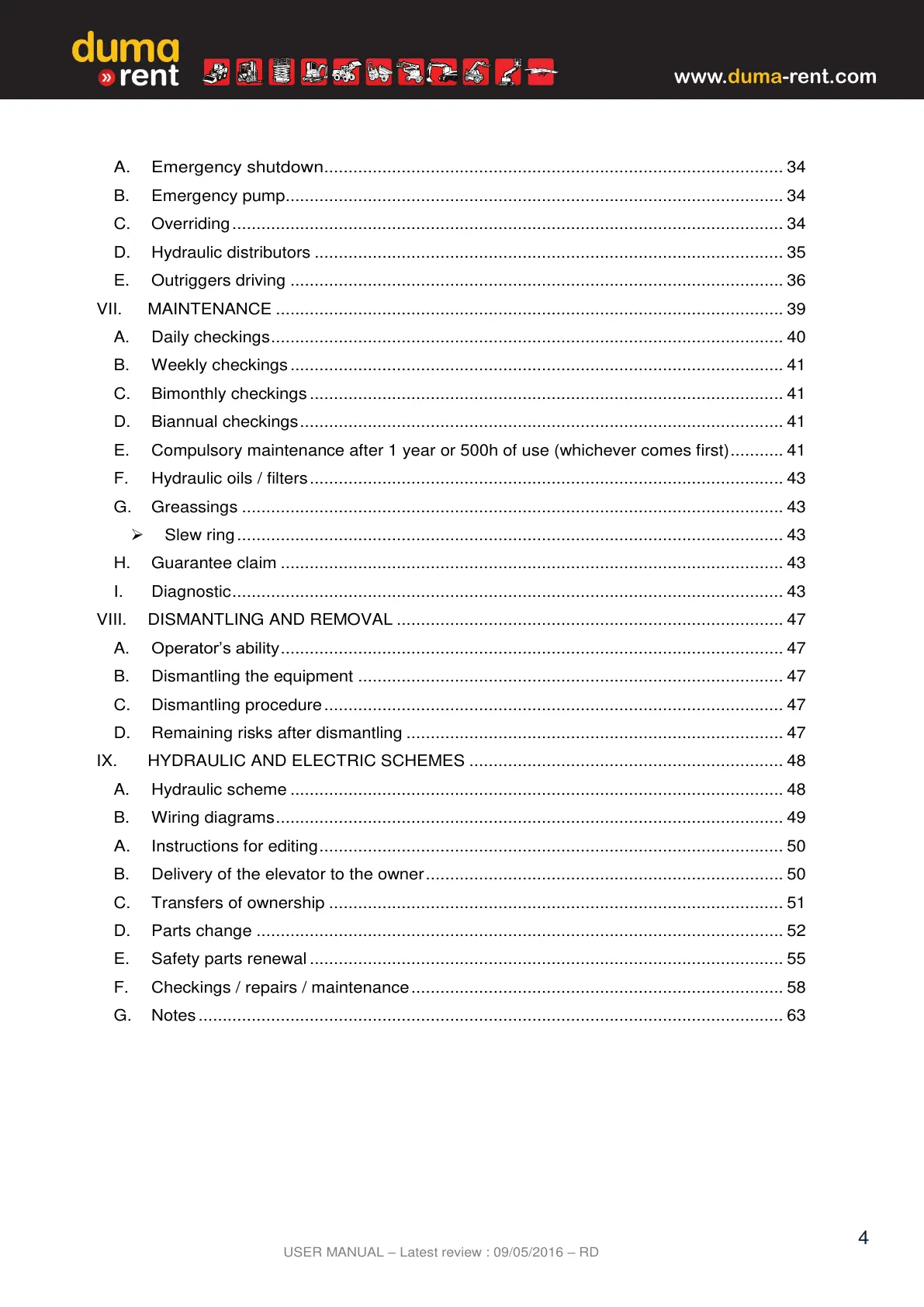 E. Compulsory maintenance after 1 year or 500h of use (whichever comes first) ........... 41