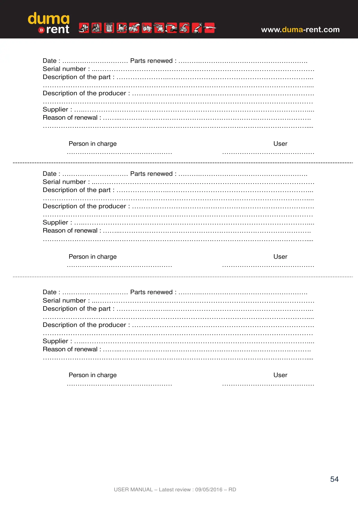 Date : ………………………… Parts renewed : ……….………………………………………….