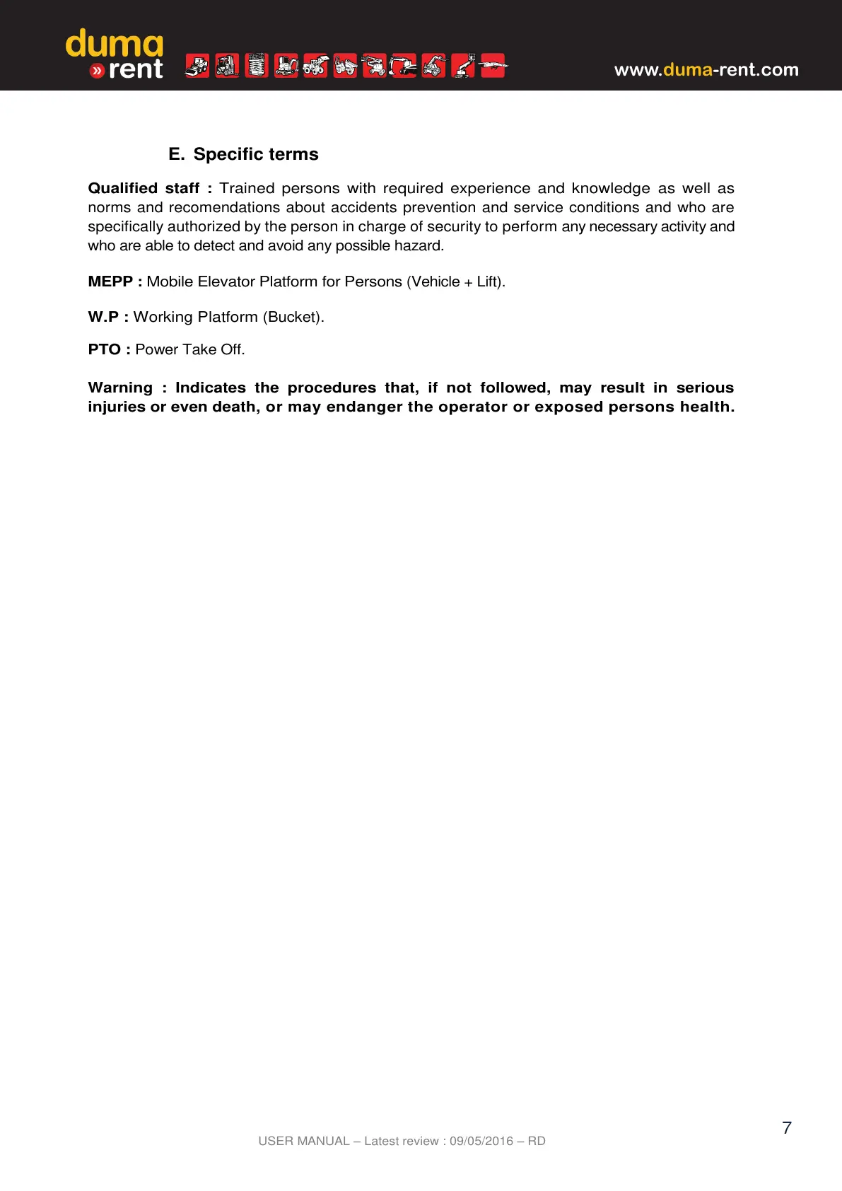 norms and recomendations about accidents prevention and service conditions and who are