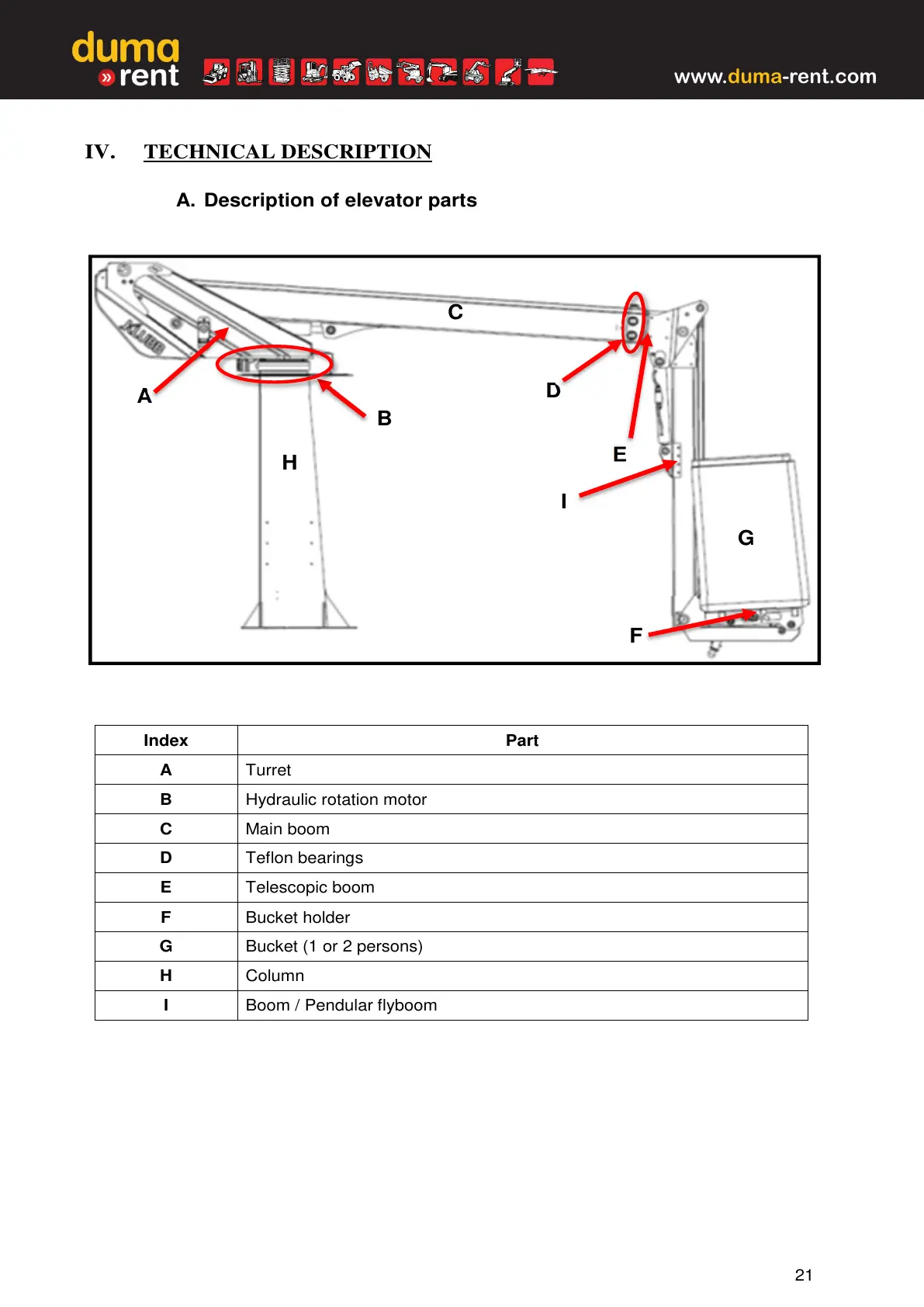 A. Description of elevator parts