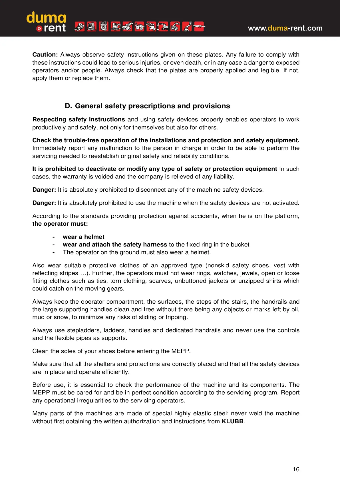 It is prohibited to deactivate or modify any type of safety or protection equipment In such