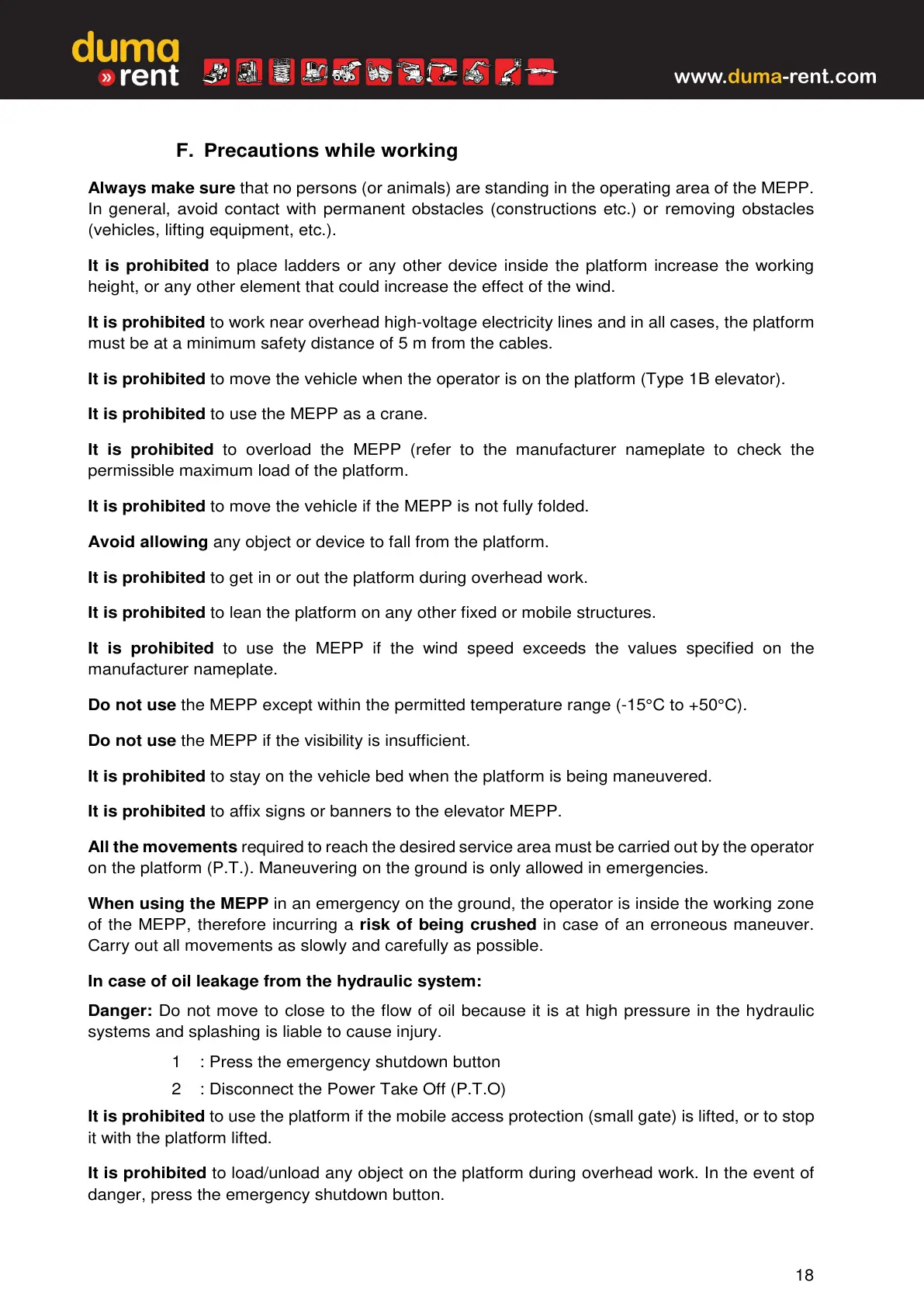 It is prohibited to use the MEPP as a crane.