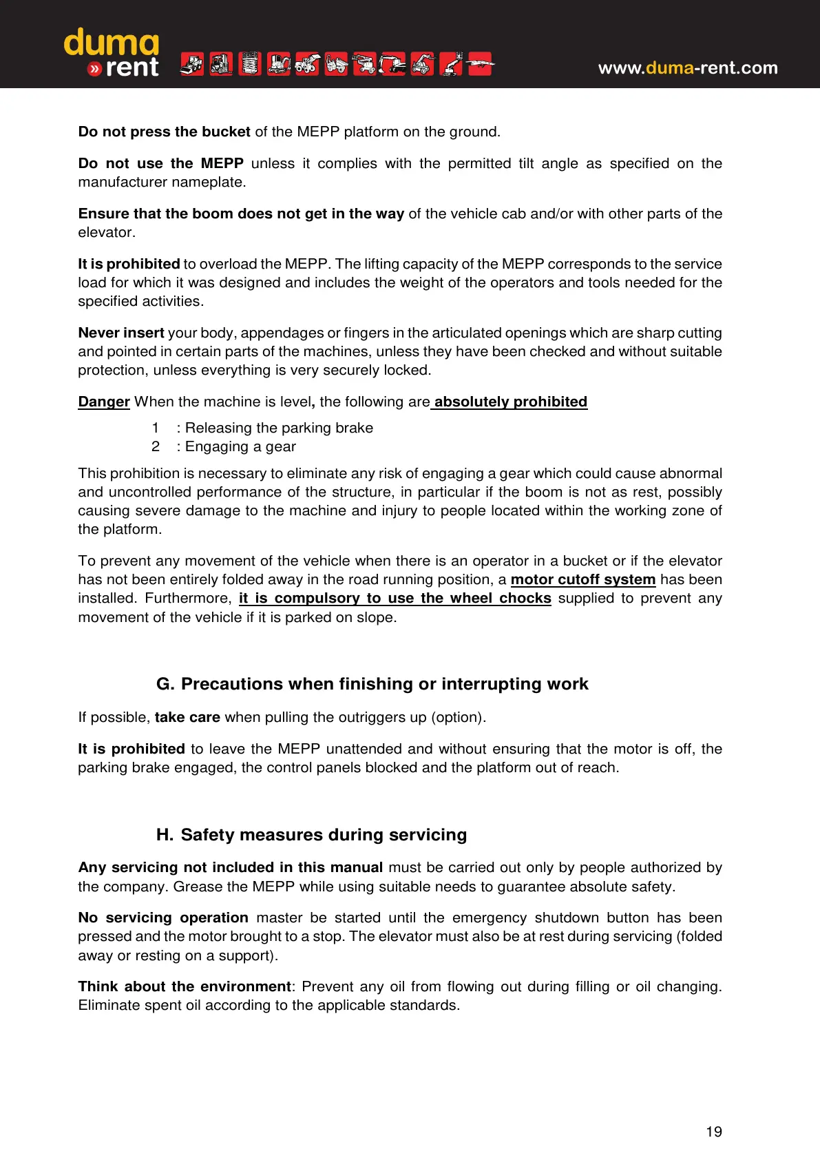 It is prohibited to overload the MEPP. The lifting capacity of the MEPP corresponds to the service