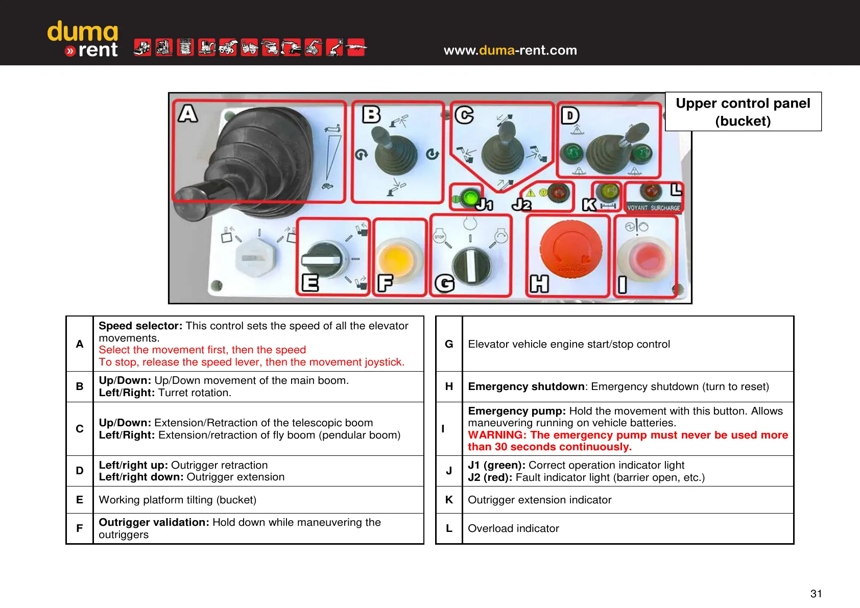 H Emergency shutdown: Emergency shutdown (turn to reset)