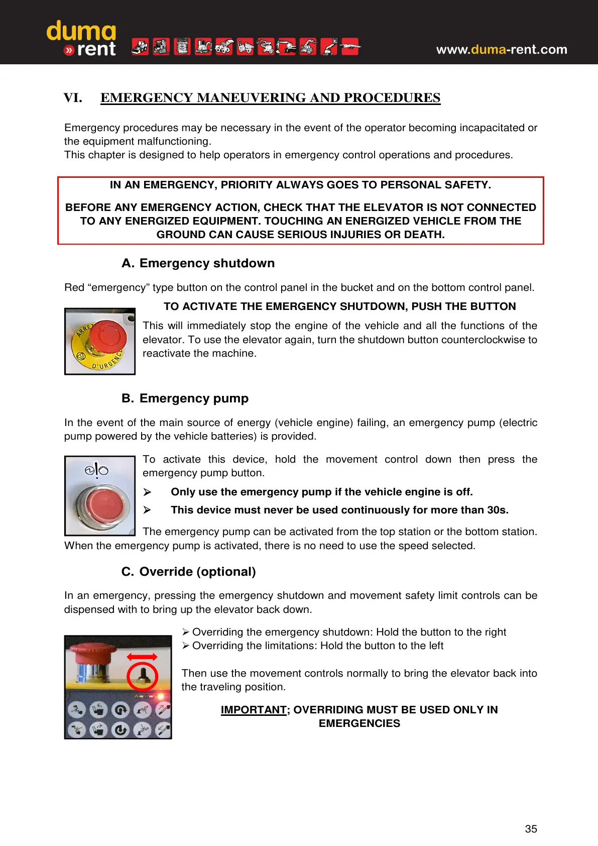 elevator. To use the elevator again, turn the shutdown button counterclockwise to
