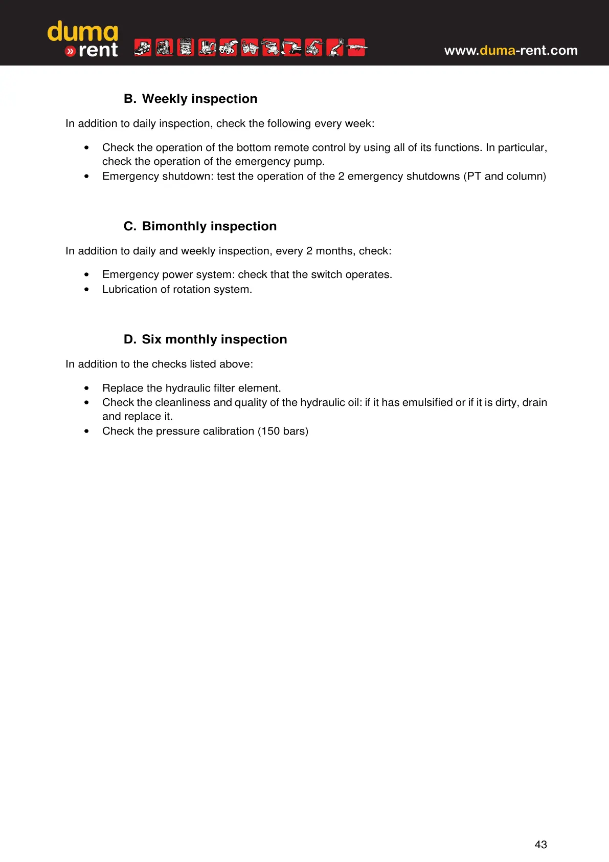 • Emergency shutdown: test the operation of the 2 emergency shutdowns (PT and column)