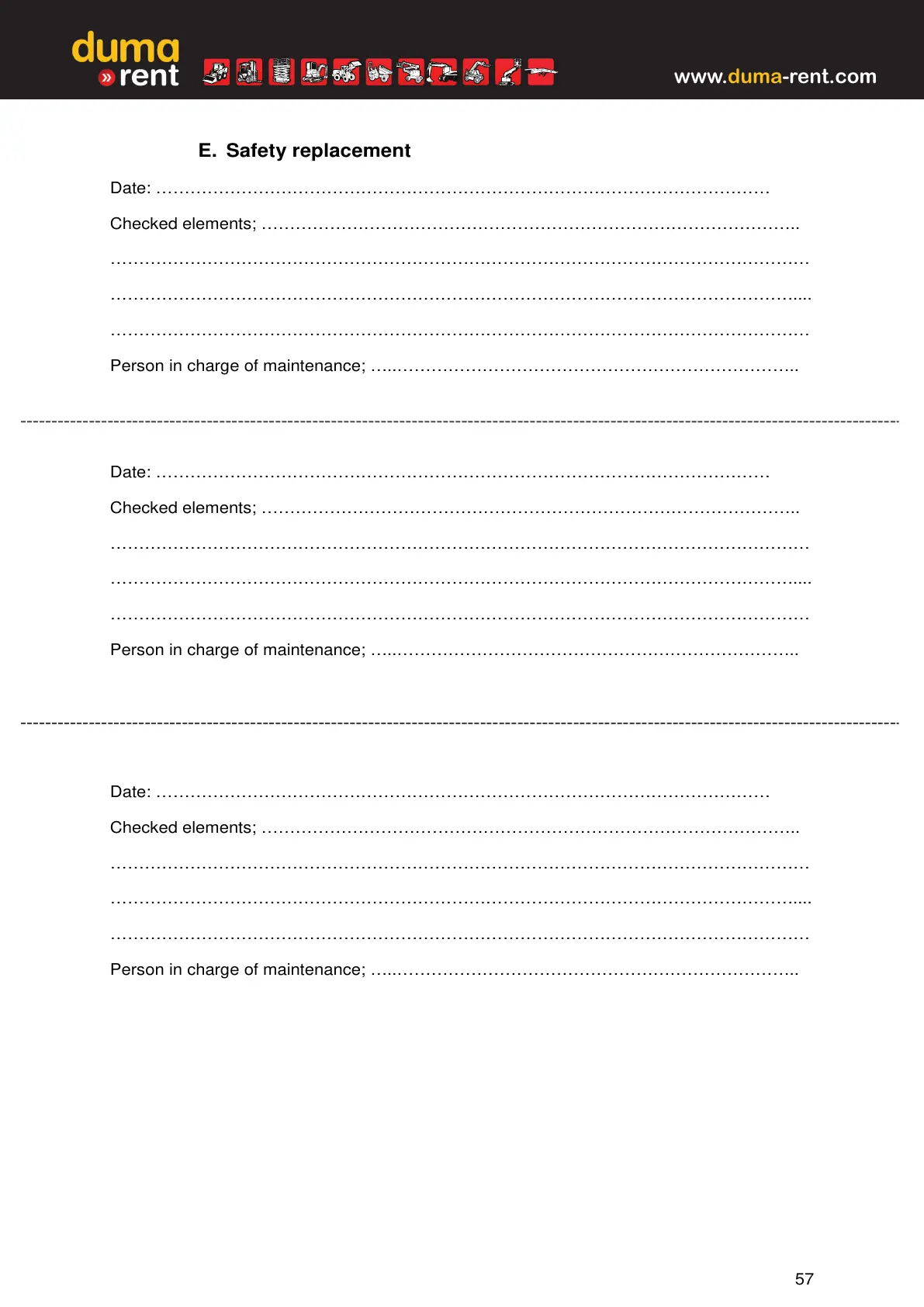 Person in charge of maintenance; …..……………………………………………………………..