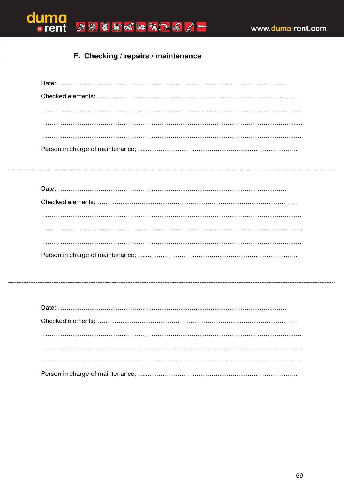F. Checking / repairs / maintenance