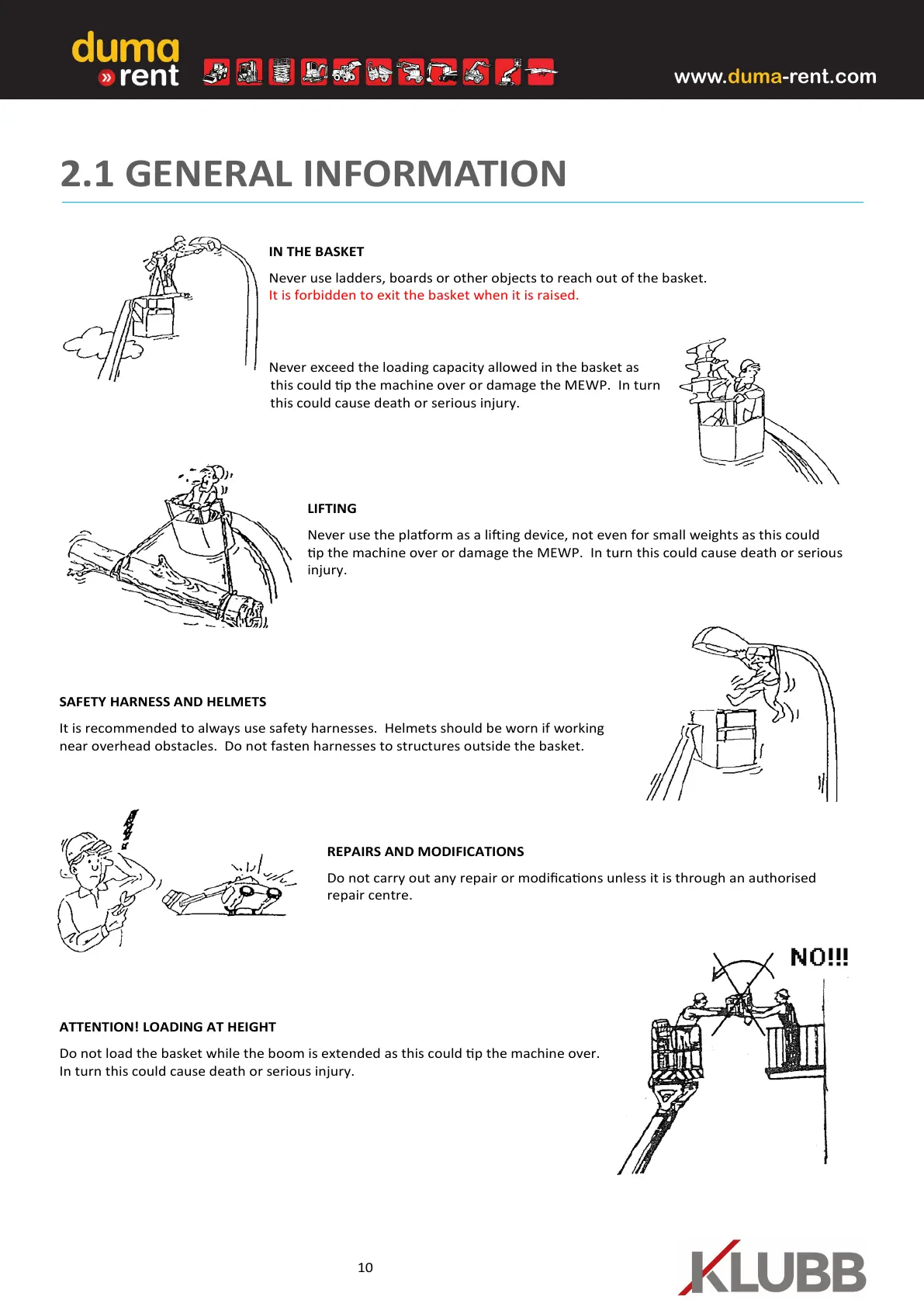 this could p the machine over or damage the MEWP. In turn